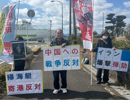 自衛隊は2月の潜水艦「せいりゅう」に続き、3月に掃海艇を徳島港に寄港させました。政府は自衛隊のイラン・中東派兵の動きを強めています。また、地方の小さな徳島港さえ軍事拠点化し、沖縄を戦場にする第1列島線での陣形を造る動きも強まっています。さらに米軍も強襲揚陸艦トリポリの中東派遣と同時に3月5日から「オレンジルート」で戦闘機の低空飛行訓練を再開しました。
