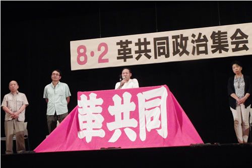 革共同集会で市東、萩原さんが訴え 週刊『三里塚』02頁(0925号01面04)(2015/08/10) 革共同集会で市東、萩原さんが訴え 8・2革共同政治集会で、反対同盟の市東孝雄さんと萩原富夫さんが農地法裁判・最高裁決戦を訴えた=東京・豊島公会堂 Tweet 前の記事 次の記事
