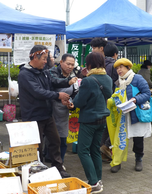 反原発集会に参加 週刊『三里塚』02頁(0941号01面04)(2016/04/11) 反原発集会に参加 東京・代々木公園での3・26反原発集会に参加した反対同盟と支援。市東孝雄さんが椎名千恵子さんらふくしま共同診療所のブースで野菜を販売、最高裁むけ署名も集めた Tweet 前の記事 次の記事