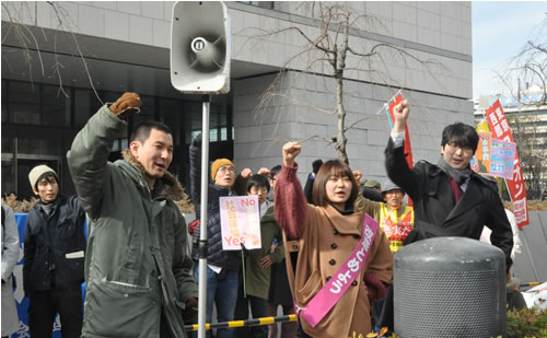 国会開会日「安倍打倒」訴え 週刊『三里塚』02頁(1009号02面04)(2019/02/11) 国会開会日「安倍打倒」訴え 1月28日、改憲・戦争阻止!大行進運動が呼びかける国会開会日行動が闘われた。三里塚現闘と全学連行動隊も参加し、国会前に集まった100人の仲間とともに改憲阻止の声を上げた。 Tweet 前の記事 次の記事