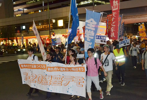 「若者の力で未来つくろう」銀座デモ 週刊『三里塚』02頁(1021号02面02)(2019/08/12) 「若者の力で未来つくろう」銀座デモ 7月20日、全学連の呼びかけで銀座デモが行われ、220人が集まった。「香港のデモに続こう」の声が夜の繁華街にこだました。 Tweet 前の記事 次の記事