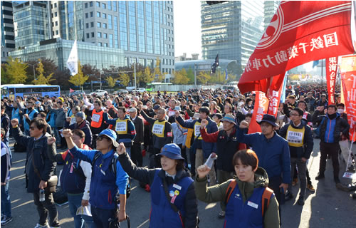 韓国 ソウル 10万人が労働者大会・デモ 週刊『三里塚』02頁(1028号01面03)(2019/11/25) 韓国 ソウル 10万人が労働者大会・デモ 11月9日、韓国・ソウルで開かれた「チョンテイル烈士精神継承全国労働者大会」に10万人が集まり、労働改悪阻止へゼネストで闘うと宣言した。動労千葉訪韓団120人も共に闘った Tweet 前の記事 次の記事
