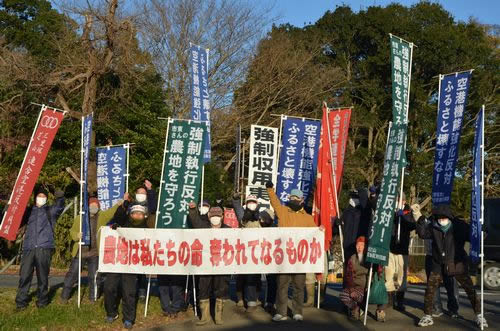 天神峰に一指も触れさせない 週刊『三里塚』02頁(1054号01面02)(2020/12/28) 天神峰に一指も触れさせない 請求異議裁判控訴審での反動判決を受け、太郎良陽一決戦本部長を先頭に反対同盟、支援連、地元住民、市東さんの農地を守る沖縄の会の仲間は、現地での座り込み闘争に決起した。判決翌日の18日早朝には現地の仲間を中心に小見川県道沿いの看板前に集い、「強制執行を阻止するぞ」と気勢を上げた。 Tweet 前の記事 次の記事