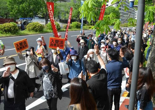 ミャンマー連帯!国軍の虐殺許すな 週刊『三里塚』02頁(1063号01面03)(2021/05/10) ミャンマー連帯!国軍の虐殺許すな 4月24日、「入管法改悪阻止!法務省→銀座デモ」に300人が結集。外務省に抗議の申し入れを終えた在日ミャンマー人と交歓した。 Tweet 前の記事 次の記事