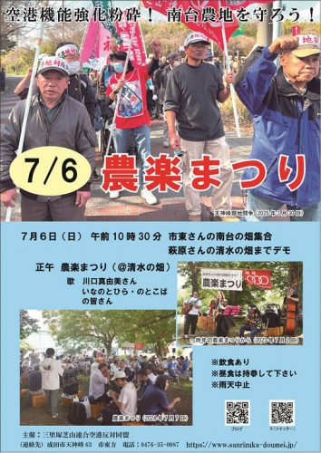 7月6日は農楽まつりへ 成田軍事空港を粉砕し労農学の力で農地死守を