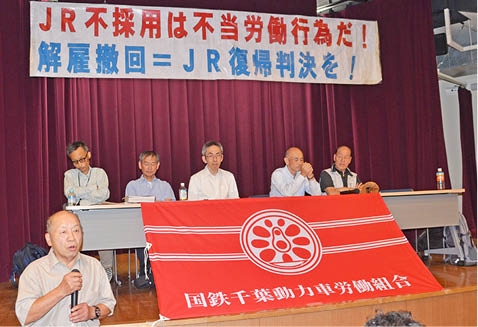 報告集会では、解雇当該の動労千葉の高石正博特別執行委員、中村副委員長が闘う決意を表明。田中康宏顧問が「労働運動を潰し、戦争へと突き進もうという国家権力を打ち破る闘いだ」と闘いの意義を明らかにした。