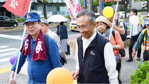 さらに、9月16日に千葉市内で行われた「改憲・戦争阻止!大行進千葉結成集会」には、呼びかけ人の一人として参加。77~81年の動労千葉の三里塚ジエット闘争以来の労農連帯の闘いへの共感を語り、「動労千葉のように闘わなければつぶされてしまう時代がきた。いまこそ人々にはたらきかけて大行進運動を発展させよう」と訴えられた。