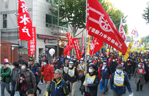 一切は、日本での闘いの前進にかかっている。「動労総連合を全国に」の国鉄決戦を突破口に、動労千葉派が真に力ある勢力として登場し、日本労働運動の主役に躍り出ることだ。韓国民主労総の仲間たちの命がけの決起に応える階級的労働運動の組織的大飛躍を絶対にかちとることだ。この決意をもって2015年の闘いに総決起しよう。