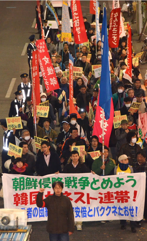 (写真 「民主労総とともに闘うぞ」「ゼネストで戦争とめよう」と訴え180人がデモ【12月16日 東京】)