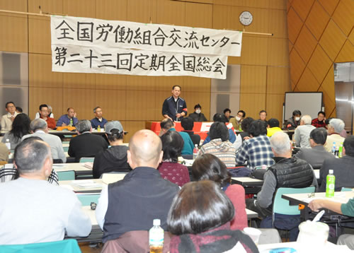 全国労働組合交流センターは2月6〜7日、東京都内で第23回定期全国総会を開いた。労組交流センターが1千万人の労働者を相手に組織戦を展開し、ゼネストを実現できる組織へと飛躍する歴史的な総会になった。飯田英貴事務局長が開会の辞を述べ「ゼネストを組織する交流センター運動へ。動労総連合と合同・一般労組全国協の建設を軸に1千人会員組織化を。2・14国鉄集会を突破口に労働法制大改悪と闘う春闘へ」と討論の方向性を提起した。田中康宏代表運営委員は「昨年の戦争法制定と労働者派遣法改悪で時代は一変した」と強調した。