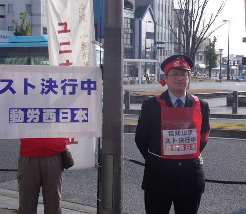 3月18日、動労西日本は原田隆司近畿支部長の職場である福知山駅で春闘第2波ストを打ち抜いた。16日の広島印刷事業所でのストに続くストライキは、京都大学反戦スト弾圧粉砕の闘いと連帯して闘いぬかれた。