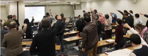国労闘争団の成田昭雄さんが「動労神奈川の青年と最後まで闘う」と述べ、湘北合同労組委員長は「非正規にとって春闘は3月雇い止めとの死活をかけた攻防だ」と強調した。合同労組かながわ、自治労、郵政の労働者、病院労組、福島とつながり避難・保養活動を続ける平塚の仲間、婦民全国協相模原支部の発言が続いた。三浦半島教組の労働者は「非正規職や青年とつながる情勢に転換し始めた」と執行部役員選挙戦を総括した。