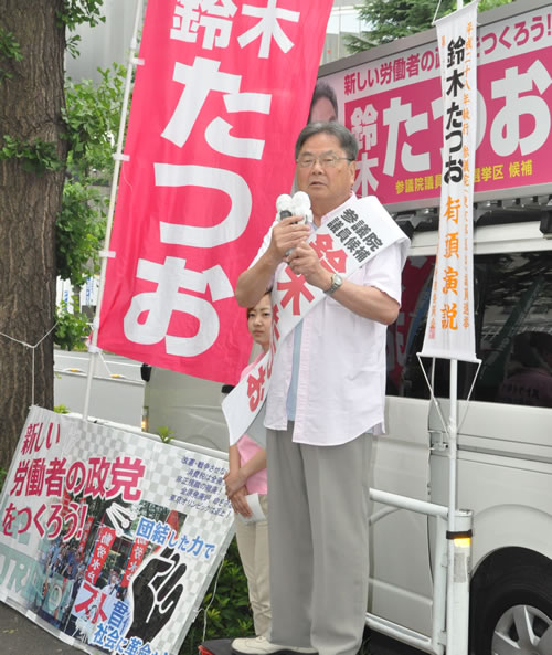 「鈴木たつお候補は、資本家はいなくても社会は回る、労働組合という形で団結していくことで安倍政権を倒す、と訴えている。ここまで資本主義を厳しく批判した候補は珍しい。斬新に感じます」「どうしたら革命ができるのかよくわかった。これは『新しい思想』だ。ぜひ広めて欲しい」。鈴木たつお候補と街宣隊の訴えに、こうした声と共感が駅頭やインターネット上で次々と寄せられた。