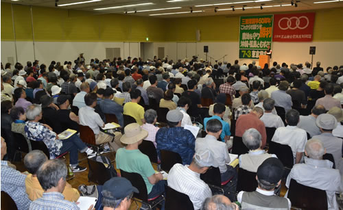 7月3日、東京・すみだ産業会館で「三里塚闘争50周年!これからも闘うぞ——農地を守り、沖縄・福島と結ぶ7・3東京集会」が三里塚芝山連合空港反対同盟の主催で開催され、全国から630人が参加した。反対同盟は半世紀にわたる「空港絶対反対・農地死守」の闘いの歴史を刻んでこの日を迎えた。