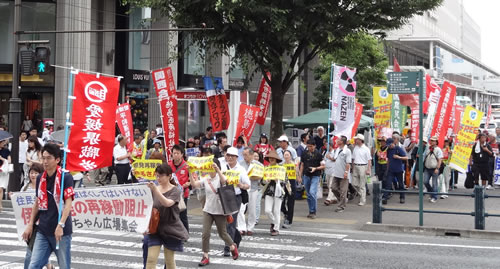 愛媛県職労 伊方原発の再稼働阻む 松山市繁華街で集会・デモ