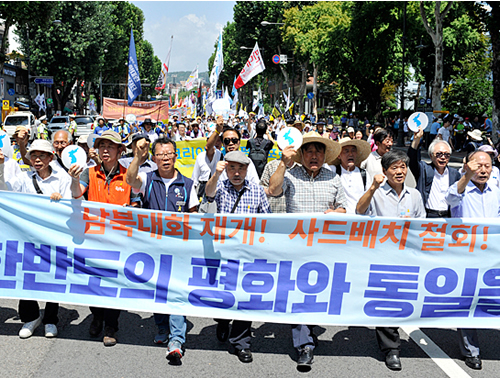 8月15日には民主労総が猛暑の中、ソウルでサード配備の撤回を求める全国労働者大会を開き、デモを行った。