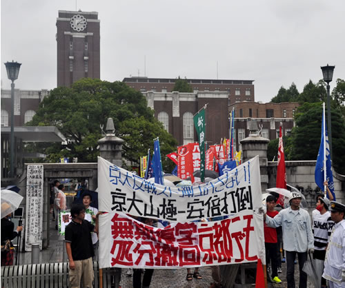 京大は新自由主義と絶対反対で闘う決戦場だ。改憲を実力で止める最先端だ。4学生処分撤回闘争と、立て看板破壊を絶対許さない根源的怒りを先頭に、2万3千の全京大生の怒りをひとつに束ねて闘おう。同学会と戦闘的寮闘争が団結の中心だ。