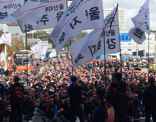 韓国・パククネ政権の反労働者政策と全面対決する民主労総のゼネスト闘争は、市民の圧倒的な支持をも獲得しながら前進を続けている。10月10日には新たに公共運輸労組傘下の貨物連帯の組合員1万4千人がストライキに突入した。