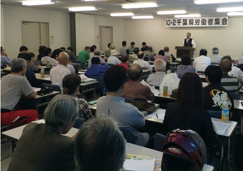 10月2日、千葉市のDC会館で11月国際共同行動に向けた千葉県労働者集会が75人の結集で大成功した。(写真)