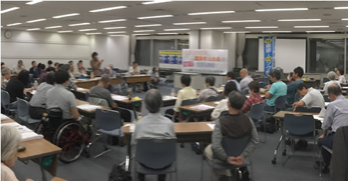 ユニオン習志野の菊池晴知委員長は障害者解雇撤回闘争が裁判闘争に突入することなどを報告し、当該の青年労働者が解雇撤回・職場復帰の決意を語った。8月に新組合を結成した病院職場、ちば合同労組からの発言が続き、各市民団体からもアピールが行われた。 労組拠点の建設により闘いの相乗効果が生まれている。この勢いを11月の大結集へと結びつける決意だ。