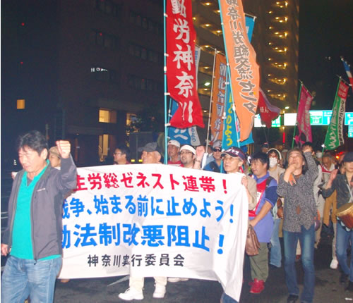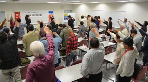 ゼネストを闘う韓国労働者人民と固くひとつになり、10・1神奈川行動が72人の参加で闘われました。ここへ向かってJRや自治体、高校をはじめとした職場・地域に約5千部の『前進』を配布し、全県的な決起をつくり出しました。集会では最初に、韓国民主労総の闘いを伝えるDVDを上映。青年労働者の提起、津久井やまゆり園事件についての特別報告に加え、重要な提起と討論が続きました。