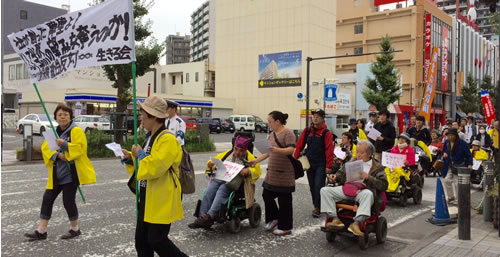 10月16日、神奈川湘北地区で「『津久井やまゆり園事件』弾劾! 民営化・非正規職化と闘って共に生きる社会をつくろう、始まる前に戦争とめよう! 討論集会」を開催した。これに先立ち13日には、地元障害者団体と婦民全国協・相模原支部が呼びかける「第11回・どんな障害があってもあたりまえに生きたいアピール行動」が行われ、20台もの車いすを連ねて70人が相模原市役所までのデモを行った。