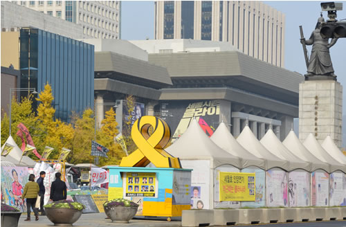 今回、セウォル号沈没事故の真相究明を求めて遺族が座り込んで抗議を続けている光化門広場を訪問しました(写真)。利益を追求し安全対策を徹底してこなかった結果の事故であることを韓国政府に認めさせた上で、事故の背景にどんな力が加わっていたのか、はっきりさせるまで闘うことを支持します。