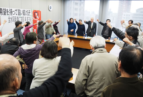 (写真 裁判後の勝利報告会で上告審での完全勝利を誓った【11月17日 大阪弁護士会館】)