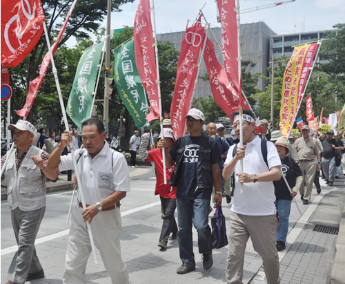 さらに連帯発言を受け、市内デモに出発。宣伝カーからは宮本麻子さんが、「農地死守」のアピールを響かせた。175人のデモは地裁に迫り、結審を阻止する強い決意を示した。