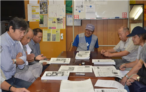 決戦本部長の太郎良陽一さんは、「10・14全国集会の大結集に向けて情宣活動をさらに強め闘う」と決意を述べた。反対同盟ニュース第59号を手に一同は担当地域に向かった。