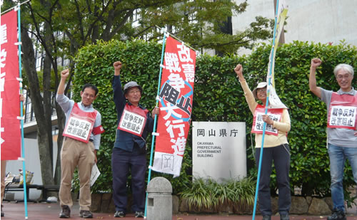 改憲・戦争阻止!大行進・岡山 天皇被災地訪問に反対 倉敷・岡山で申し入れと街宣