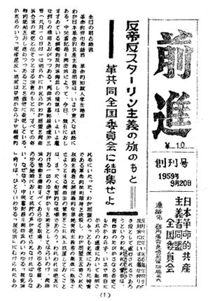 創刊号の見出しは、「反帝・反スターリン主義の旗のもと革共同全国委員会に結集せよ」である。革共同全国委員会の誕生と『前進』の発刊をもって、「反帝国主義・反スターリン主義プロレタリア世界革命」の旗が、国際共産主義運動の歴史上初めて打ち立てられた。以来60年間、決して平坦な道ではなく、あらゆる反動を打ち破ってその初志を貫いてきた。