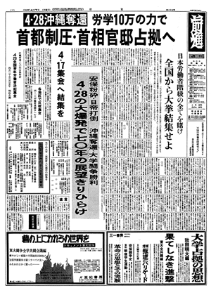 『前進』はガリ版刷りから活版化、タブロイド判、ブランケット判(今の大きさ)と進化し、間隔も旬刊から週刊へと発展していった。そして、70年安保・沖縄闘争を文字通り牽引(けんいん)する労働者・学生の新聞に成長していった。「沖縄奪還、安保粉砕・日帝打倒」の大見出しが全国の労働者・学生の心をわしづかみにし、巨万のデモを組織する推進力となった。