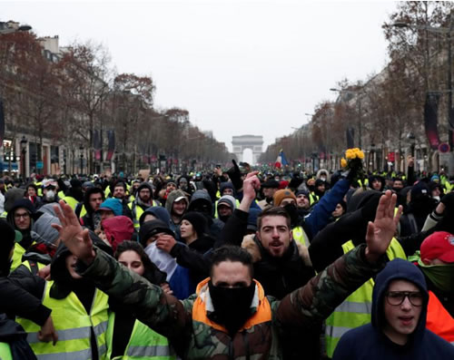 (写真 黄色いベストを着用して「マクロン退陣!」を叫び、怒りのデモに立つフランスの労働者人民【12月15日 パリ】)
