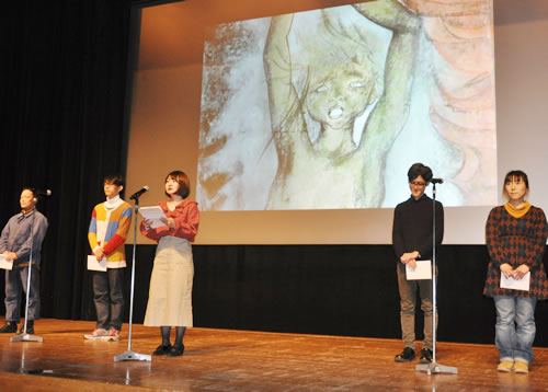 次に、ほらぐちさんを中心に若者5人が並んで登壇し、原爆詩人・峠三吉の詩「にんげんをかえせ」を朗読。そしてほらぐちさんが大行進運動をこの1年、全国で立ち上げた地平の上に、杉並区議選に挑戦し闘う特別アピールを行った。