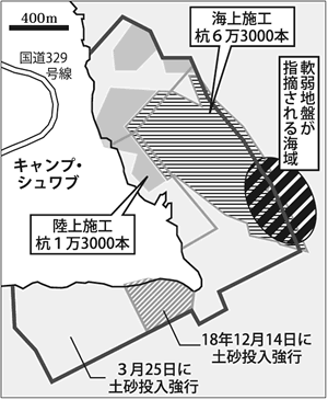 ところがこの過程で、沖縄県が以前から指摘していた「マヨネーズ状」と呼ばれる海底の軟弱地盤の存在を、政府側も認めざるを得なくなった。地盤改良のためには、約7万7千本もの杭を海底に打ち込む「前例のない工事」に3年8カ月の工期を要する(防衛省の試算)とされ、県による新たな承認も必要となる。基地建設にかかる総工費も青天井で膨れ上がることが予想されている。