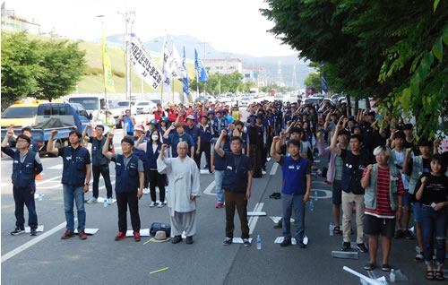 AGCファインテクノ韓国(AFK)を相手に解雇撤回を闘っている民主労総金属労組所属の旭非正規職支会が6月19日、「われわれは勝利する----旭闘争4年勝利決意大会」を開いた。2015年春、韓国・クミの旭硝子(当時)工場で社内下請け会社GTSで働いていた非正規職労働者が「人間らしく暮らそう!」と労組を結成、「奴隷のように働いていた工場が『現場』に変わった」(旭非正規職支会編「野の花、----工団に咲く」)。しかし1カ月後、組合員138人を含む178人がメール1本で解雇された。
