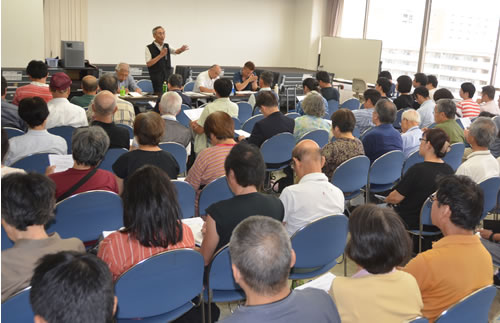 質疑応答と討論に移った。東京西部ユニオン鈴木コンクリート工業分会の吉本伸幸書記長は、10月14日に東京で行われる関生支援集会への参加と組織化を呼びかけ、「労働者は明るく楽しく、そして堂々と闘う」と発言した。