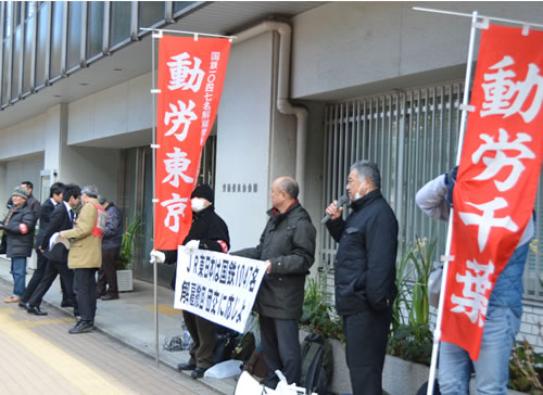 1月31日、動労神奈川はJR東日本環境アクセスによる時廣慎一書記長の解雇を弾劾し中央労働委員会での闘いを展開。これに先立ち動労総連合は中労委(東京・港区)前で国鉄1047名解雇撤回と2・16国鉄集会への結集を訴えて宣伝行動に立った。