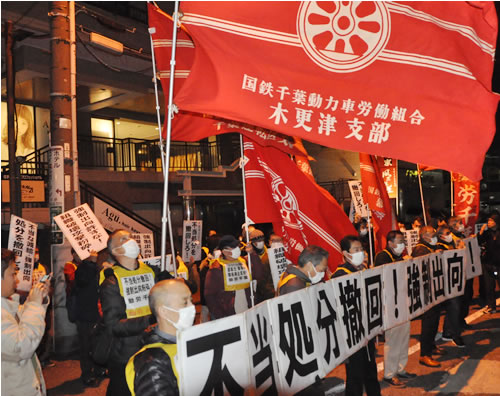これは「労組なき社会」をつくるJRの攻撃が、動労千葉に対して向けられてきた重大な事態だ。木更津支部は久留里線のワンマン運転に反対して闘い、昨年春にはCTS木更津事業所で組織を拡大している。今回の攻撃は、その木更津支部を標的にし、動労千葉の組織破壊を狙うものだ。