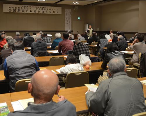 初日の「地域農業を守ろう! 安倍農政を葬ろう! 全国農民の知恵を出し合おう」講演集会には、地元の農家や農業関係者が多く集まった。