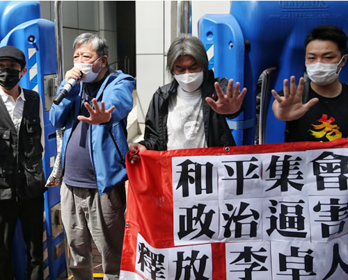 李卓人氏は、当日起訴後に保釈され、集まった支援者に「悪政清算の闘いは続く。職場を守り、『五大要求』の闘いを堅持しよう」と訴えた。