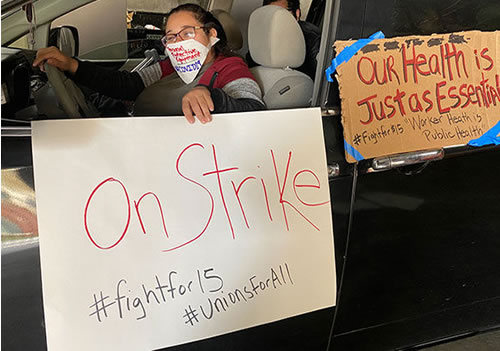 全米看護師連合(NNU)は大規模なウイルス検査、集中治療室(ICU)病床の拡充、移民・難民が摘発されず安全に医療を受けられるようにすることなどを要求。もうからないことを理由に閉鎖された病院の再開や刑務所からの受刑者の解放も求めている。15日には全米で医療労働者の一斉行動も闘われた。