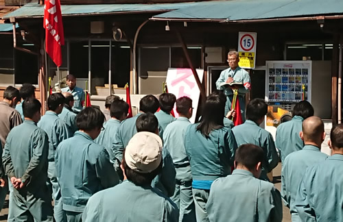 春闘の過程は、コロナの感染症が八王子市内でも発生して組合員の不安が増大し、緊急事態宣言がいつ発せられるのかわからない状況にあった。全組合員が参加する春闘妥結大会をめぐって議論となり、「開催か延期か」で揺れ動いた。執行部は密室での開催をやめ、消防車が並ぶ工場建屋内での開催を決めた。消毒液を準備し短時間にすることにして、31日に開催した。組合員もその努力を評価し、大会は成立した。