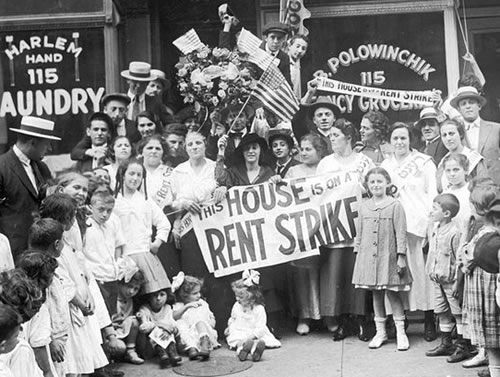 いわゆる「スペイン風邪」が猛威をふるっていた1910年代後半のニューヨーク。多くの住居に、英語とイディッシュ語(中東欧のユダヤ人が話していた言語)で「スト決行中」と書かれた赤い旗が翻っていた。レント(家賃)・ストライキだ。闘いをリードしたのはヨーロッパをはじめ各地から移住してきた労働者階級の女性たち。夫や子どもは戦地に送られて久しく、あるいは労働者として日夜働いていた。家賃は労働者世帯の収入の半分以上を占め、多くの家庭で子どもに十分な食料も与えることができないほどだった。