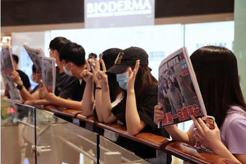 黎智英氏、周庭氏らへの不当逮捕に抗議して、11日夕方に各地の商業ビルでの「みんなで歌おう」行動が呼びかけられた。警察は催涙スプレー乱射で弾圧したが、民衆は徹底的に抗議の意をたたきつけた。その後2人は深夜に保釈されたが、香港政府は起訴に向けて捜査を進めている。闘いはこれからだ。なお、11日のリンゴ日報を多くの人々が買い求め、売り上げは普段の5倍となった。