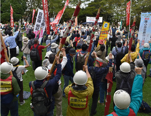 昨日私たちは第50回定期大会を開催し、今秋から年末、来春まで「いつでもストを打てる体制」を確立しました。新自由主義に断を下すため、11・1全国労働者総決起集会・日比谷野音への大結集をお願いします。農地を死守し、成田廃港まで共に闘いましょう。