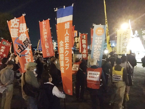 集会では、安倍政権を継承し敵基地攻撃能力保有を狙う菅政権への怒りが次々と表明された。沖縄の「チーム緑ケ丘1207」が作成したDVDが多くの労働者に手渡され、様々なところで交流が生まれた。