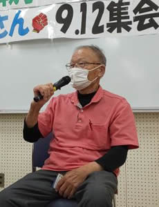 司会を中部合同労組副委員長の宮城盛光さんが務め、主催者挨拶で国鉄闘争全国運動・沖縄の呼びかけ人の金城幸男さんが菅政権を批判し、11月労働者集会と連帯して本集会を成功させようと呼びかけました。