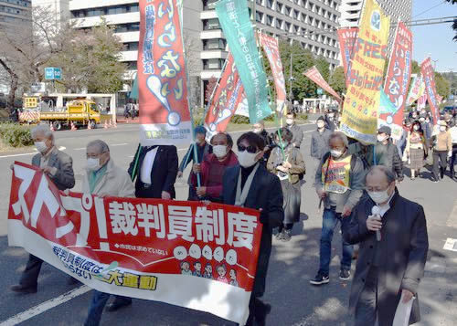 裁判員制度 今こそ廃止を 大運動 100人が最高裁へデモ